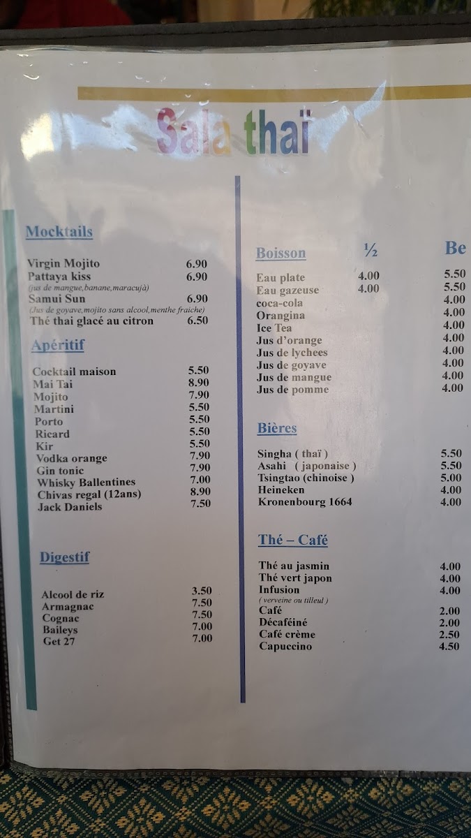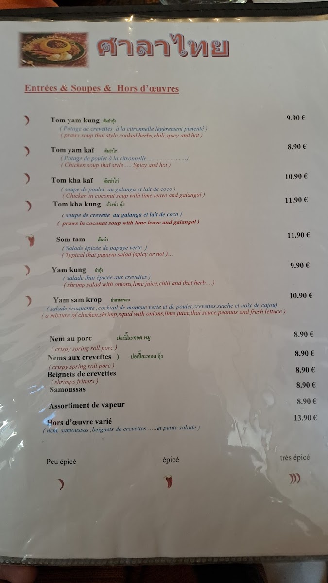 The menu at Sala Thaï offers a delightful blend of traditional Thai flavors, carefully crafted to provide a memorable dining experience. A standout dish is the Soupe de Poulet À la Citronnelle, a fragrant and zesty chicken soup infused with lemongrass, ideal for starting your meal on a fresh note. For a crispy appetizer, the Nems de Légumes Sautés delivers sautéed vegetable spring rolls that offer a perfect balance of texture and flavor.